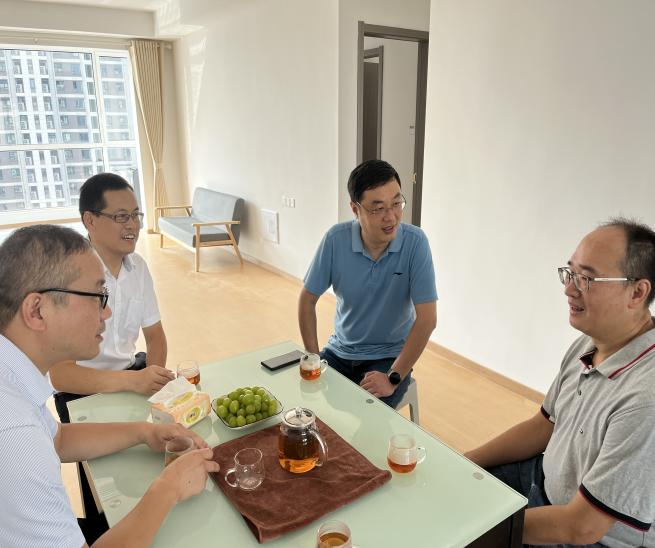 张智玮老师对公司领导班子莅临慰问深表感谢。他说:“安庆的气候环境与生活节奏同我的家乡台湾南部有诸多相似,能很快适应这边的生活。”同时大陆对教育事业的高度重视和大力投入,坚定了他扎根大陆发展的动力和信心。公司同仁的关心和热情,让他深切感受到同胞之情的亲切与温暖。他表示,未来将积极参与到公司的各项工作中,争取在教学、科研上有所突破,为公司的发展和对外交往做出更多贡献。(撰稿/摄影:詹琛 审核:王波)