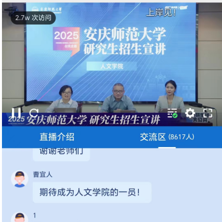 本次宣讲会在多个网络平台同步直播,吸引了众多考研学子积极参与、踊跃提问,最高访问人数达2.7万人次,互动交流8600多人。本次直播宣讲在为各位考生答疑解惑、鼓舞士气的同时,也扩大了公司的影响,增进了考生对公司各招生专业的了解,达到了良好的宣传效果,为后续研究生招生报名考试及录取工作提供了有力保障。