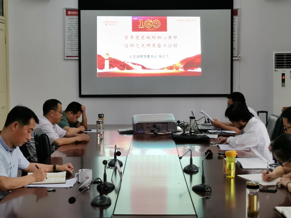 7月4日下午,公司党委书记张红飞在红楼二楼会议作了题为“百年党史砥砺初心使命 信仰之光照亮奋斗征程”的专题党课报告。威廉希尔williamhill历史学专业教工党支部全体党员参加了报告会。历史学专业教工党支部书记李正君主持会议。