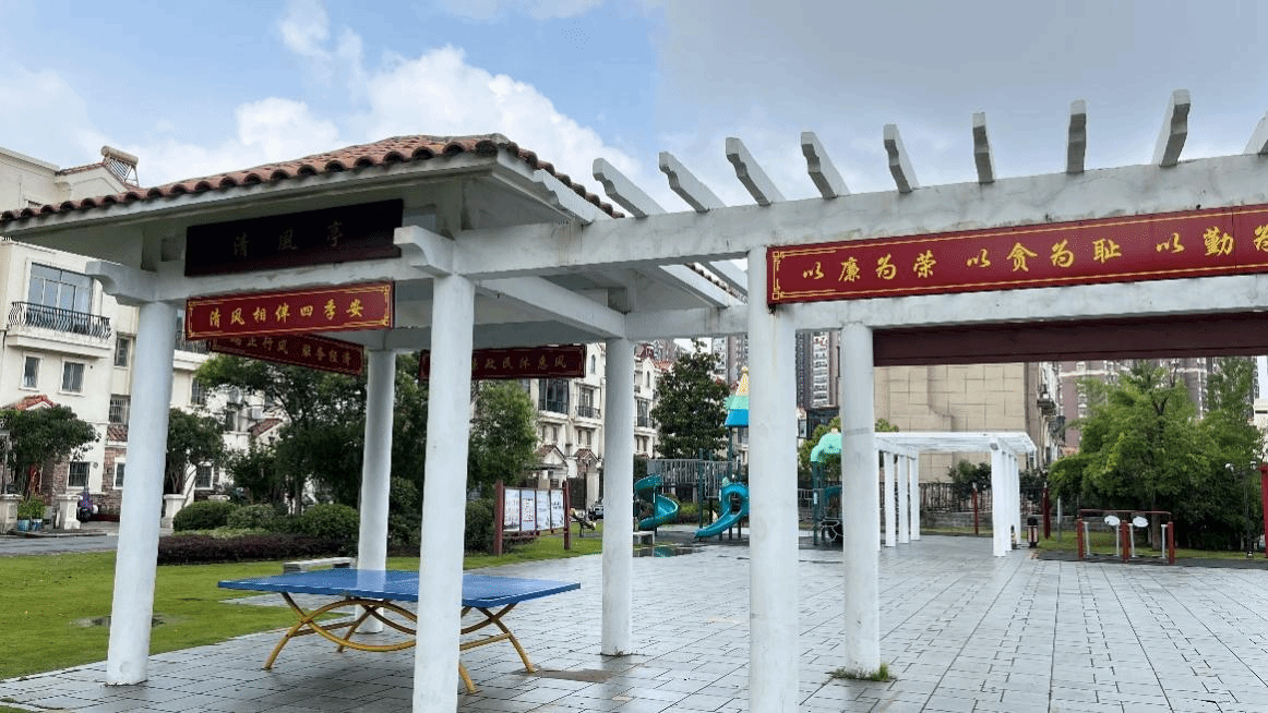 调研团队成员观察到,依托于居民小区广场打造的迎江区廉政文化广场,设有“清风亭”和“正气亭”,两亭中间由“廉政廊”连接,亭身悬挂廉洁警句牌匾。在“两亭一廊”的四周又通过广场立牌讲述家风家训和廉洁文化故事,这些都使得廉政教育可以真正走进社区,融入群众日常生活。
