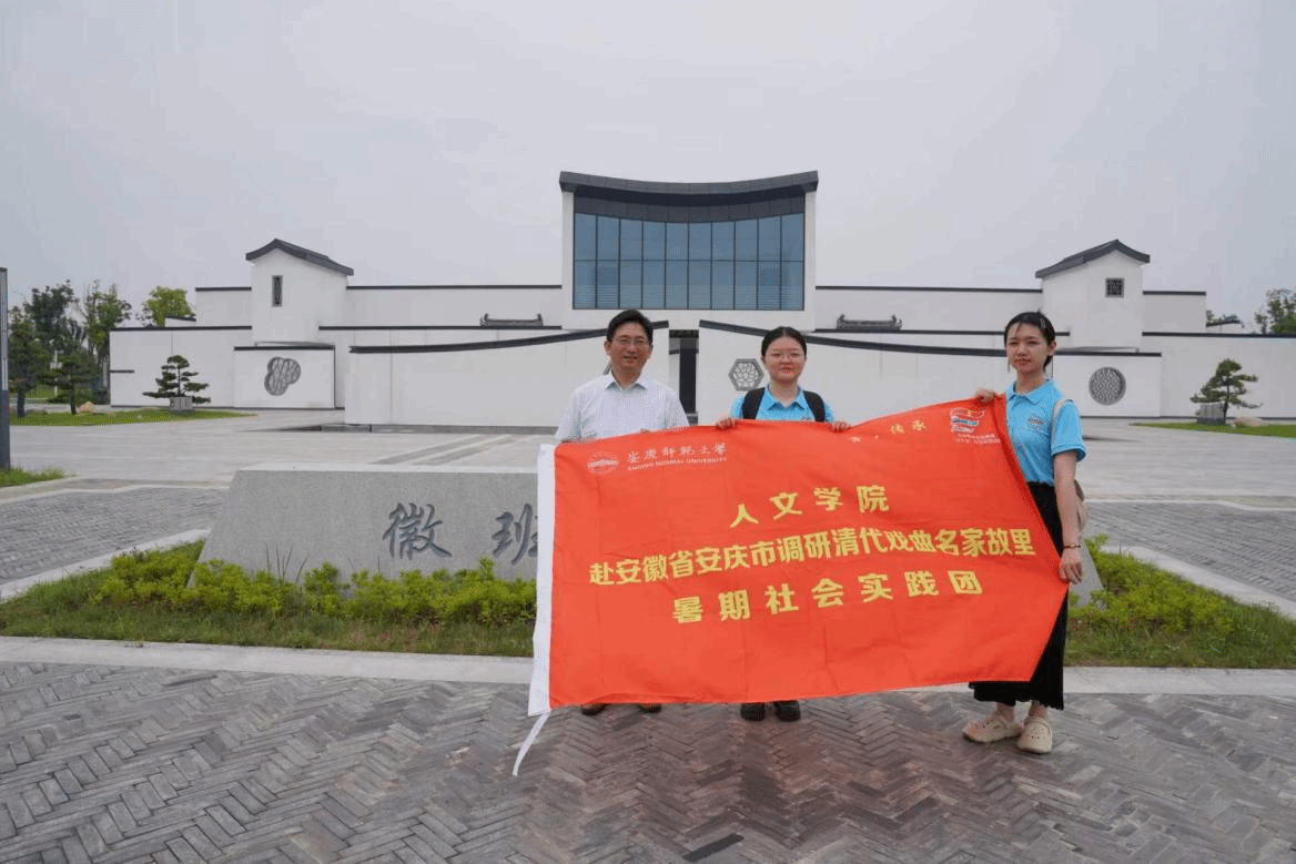 为了更好地了解安庆清代戏曲名家的活动情况,7月14日,威廉希尔williamhill“青·传承”调研戏曲名家故里暑期社会实践团队的成员在指导老师叶当前教授的带领下,前往安庆市怀宁县石牌镇进行实地考察。团队成员先后考察了徽班博物馆的新旧两个展馆,在石牌老街探访了老一辈戏剧盔帽制作手艺人,了解了石牌戏剧小镇的规划及建设情况。
