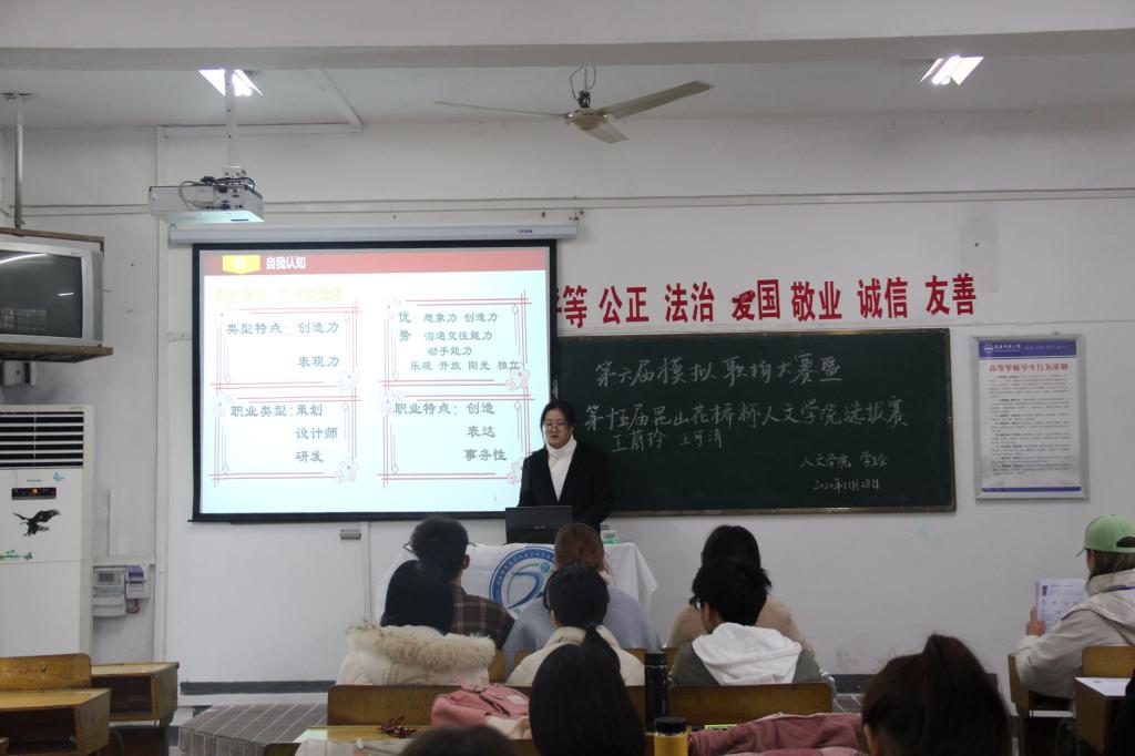 本次比赛面向全院员工,要求参赛者在赛前提交参赛PPT及职业生涯规划书。比赛现场,选手依次上台介绍自我职业规划、发展目标。借助PPT及VCR,选手结合自身条件、职业认知、当前形势等多方面开展讲演。通过分析本专业发展前景及当前就业形势存在的问题和风险,参赛选手们提出考教团队格证、考教师职业编制等现实职业期望。