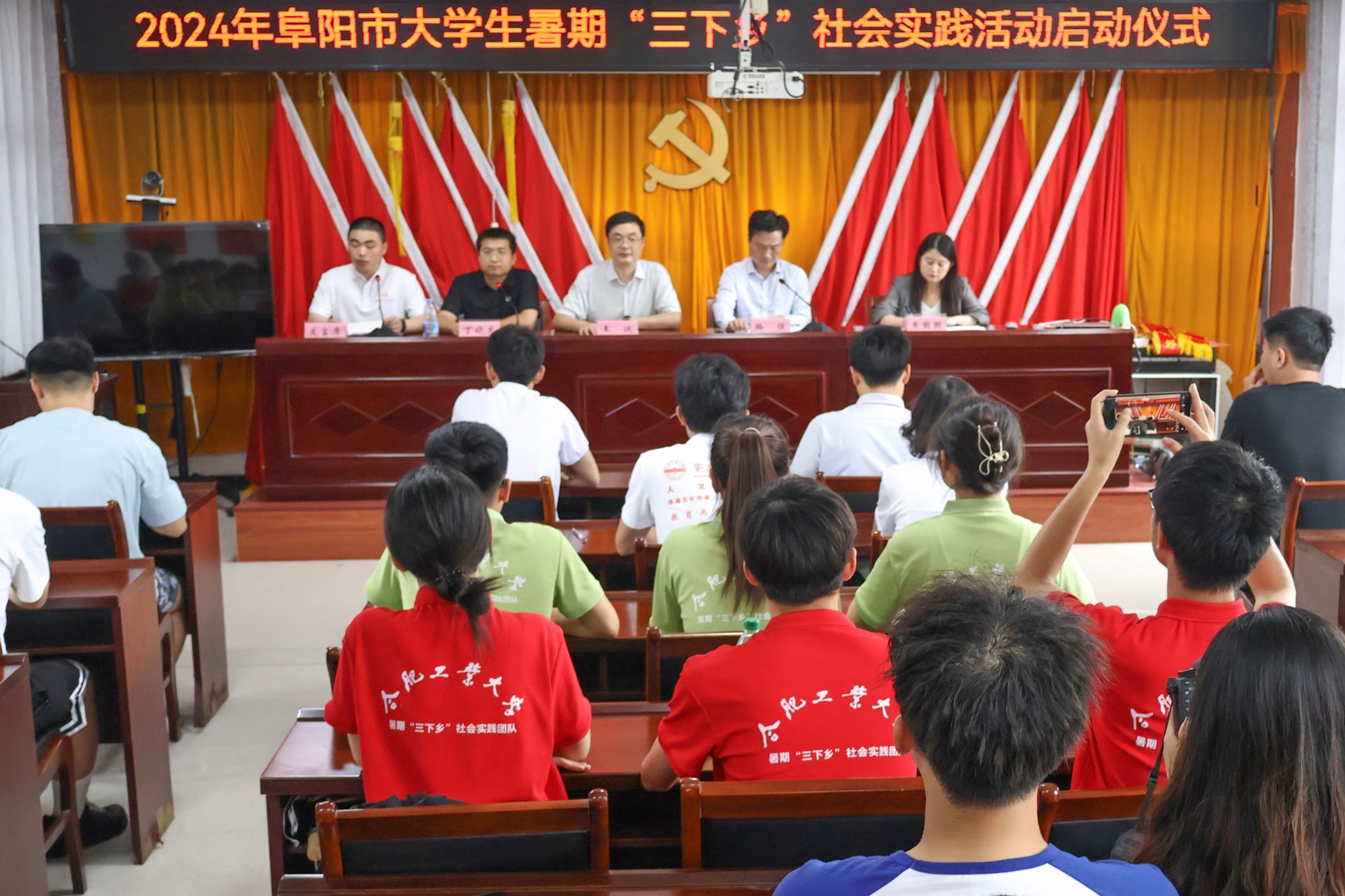 在阜期间,王波与团市委副书记骆强、团颍州区委书记朱囡囡共同出席2024年阜阳市老员工暑期“三下乡”社会实践活动启动仪式,并参加了“青年学子颍州行”暨老员工暑期“三下乡”社会实践活动交流座谈会。