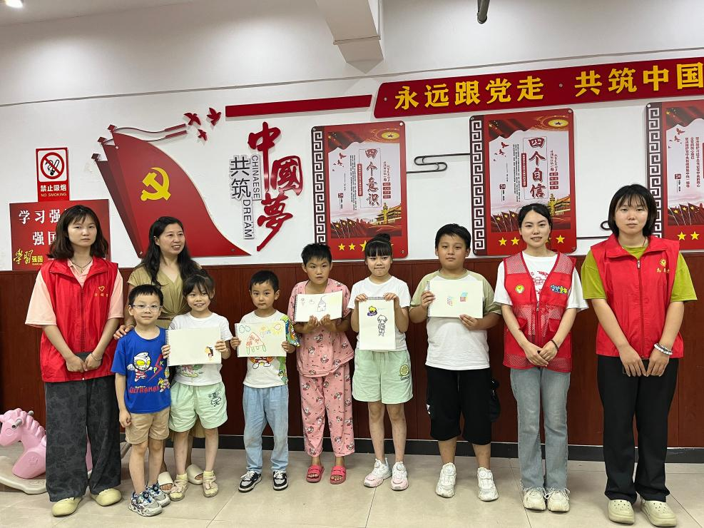 6位受助儿童继续围绕“宜存丹心,赓续血脉”主题,分享阅读红色图书的心得体会,回答了“如何践行传承红色文化”这一核心问题,最后以文字的形式将自己的所学所感记录下来。“希望通过这节特殊的课堂让孩子们能够做到感党恩、听党话、跟党走,努力成长为合格的社会主义建设者和接班人。”实践团成员表示,他们将继续用真心和热情来守护留守儿童,让孩子们度过一个思想有引领、健康有呵护、情感有抚慰的快乐暑假。