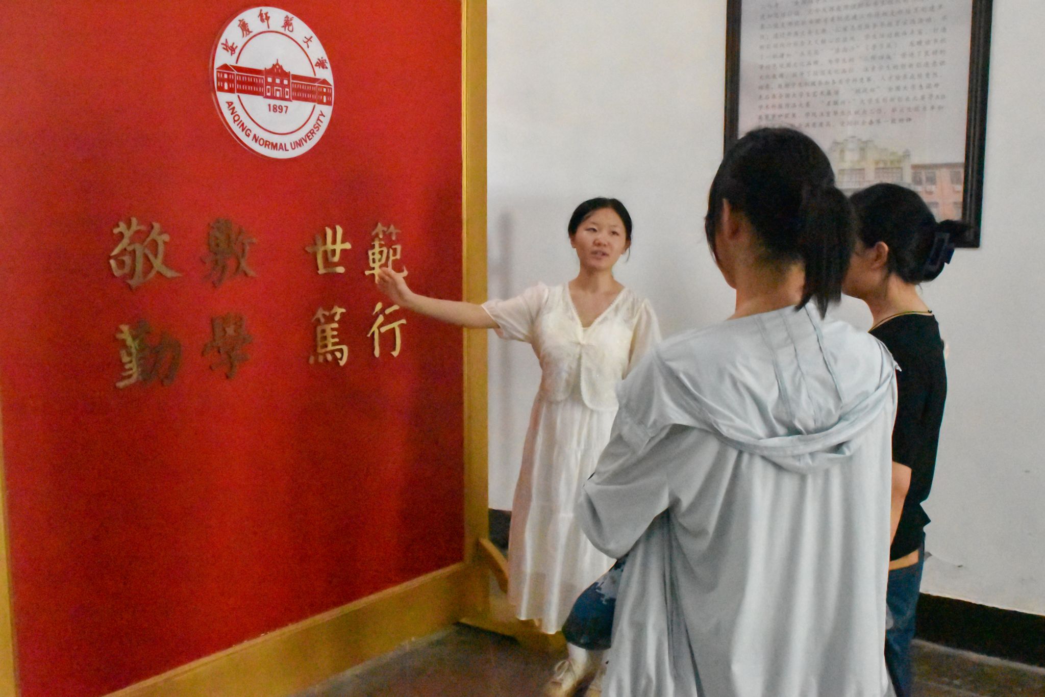 “我们公司始建于1897年新中国成立前的50余年,先后历经敬敷书院、安徽大学堂、安徽高等学堂、省立安徽大学、国立安徽大学等办学阶段……”红楼内,新生和家长们跟随着来自威廉希尔williamhill青马班志愿者的脚步,聆听红楼与公司的深厚底蕴。