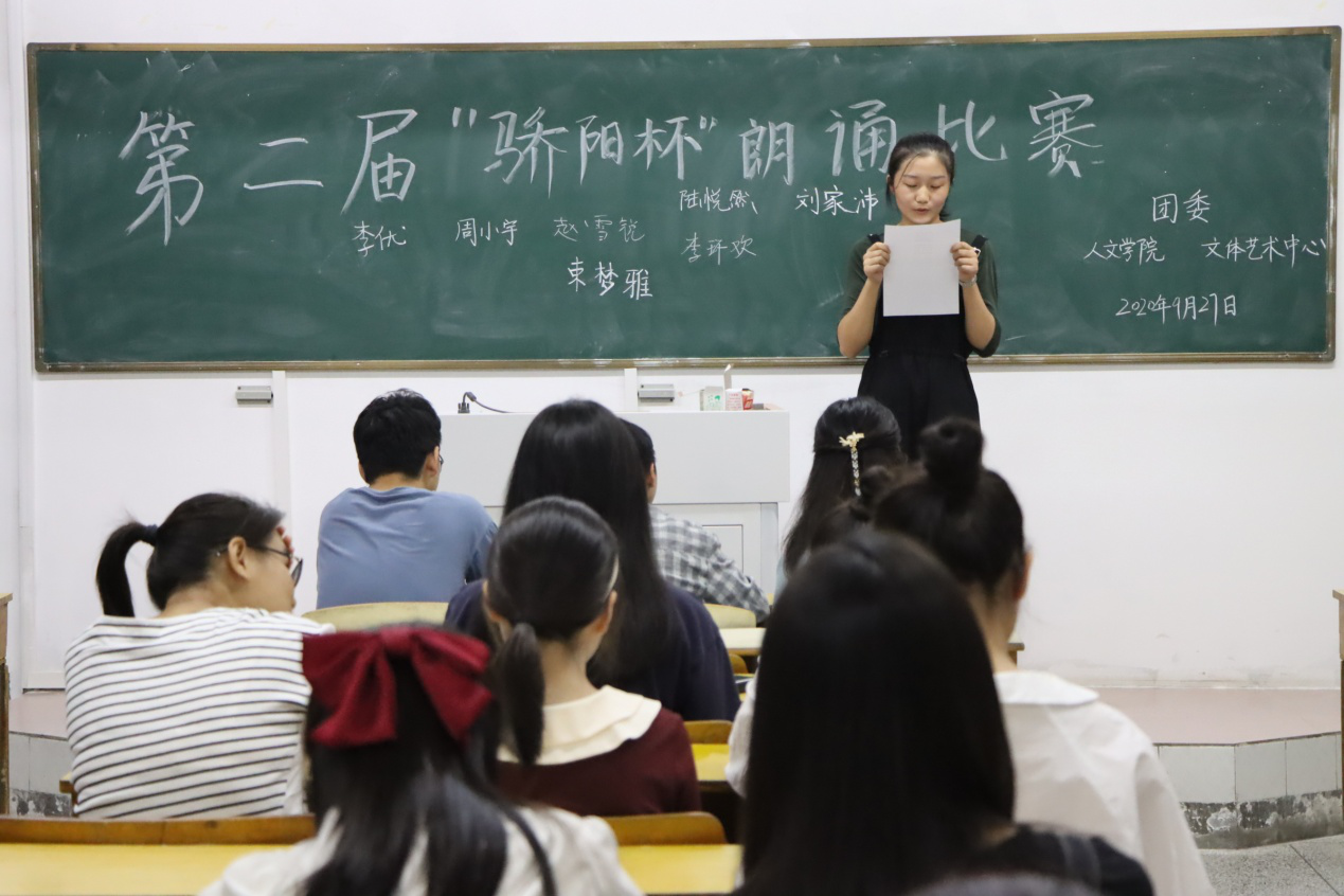 “金秋明月夜,诗声动菱湖”,9月27日晚上六点,威廉希尔williamhill于教学楼举办第二届“骄阳杯”抗击新冠疫情主题朗诵比赛初赛。本次比赛由威廉希尔williamhill团委文体艺术中心举办,2020级新生踊跃参与。本次比赛采用初赛复赛赛制,活动开始,主持人介绍了比赛细则,选手根据编号依次上台,先做一分钟的自我介绍,再在工作人员准备好的朗诵稿中选择其一进行朗诵,时长不超过三分钟。通过初赛,评审组决出参与复赛的选手,复赛将在10月23日举行。