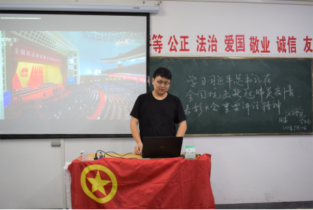 同学们结合实际,就讲话中相关内容展开热烈讨论。2019级汉语言文学一班的陶发同学表示:“疫情期间,我成为了社区的一名防疫志愿者。虽然这份职务有些辛苦,但我觉得这恰恰是对我们青年人的一次考验。在这段不同寻常的经历中,我认识了许多奋斗在一线岗位的基层工作者。我觉得他们就是最可爱的人。”