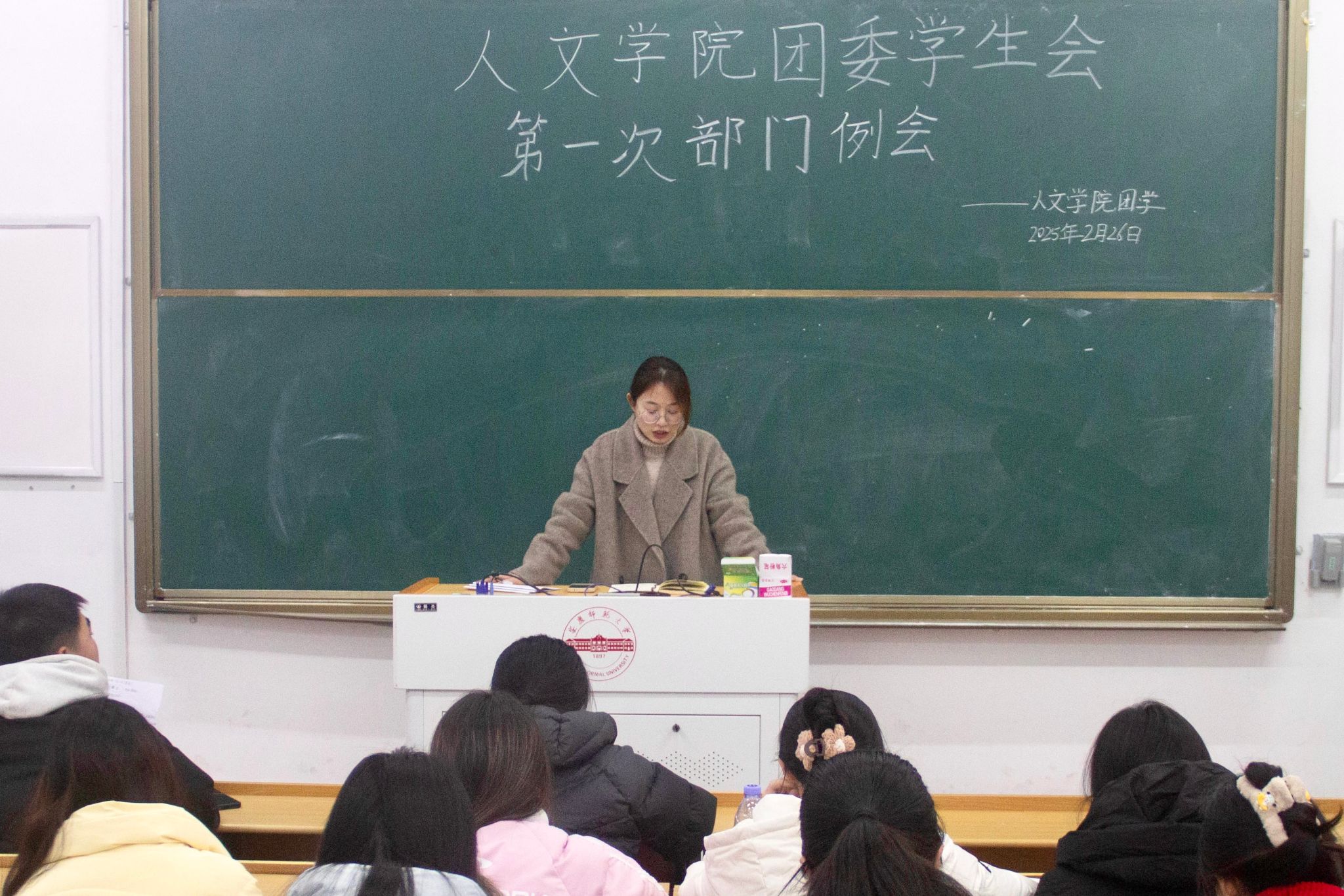 员工会主席潘晨宇同学领学了相关学习内容。各部分负责人从部门建设、思想领导、人员变动、工作安排等方面展开交流,回顾了过去团学工作得失,同时梳理了本学期团学工作计划。
