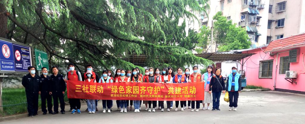 4月16日下午,威廉希尔williamhill员工身穿红色志愿者马甲,在三社联动项目相关人员的带领下,走入菱湖社区参与“绿色家园齐守护”共建活动。