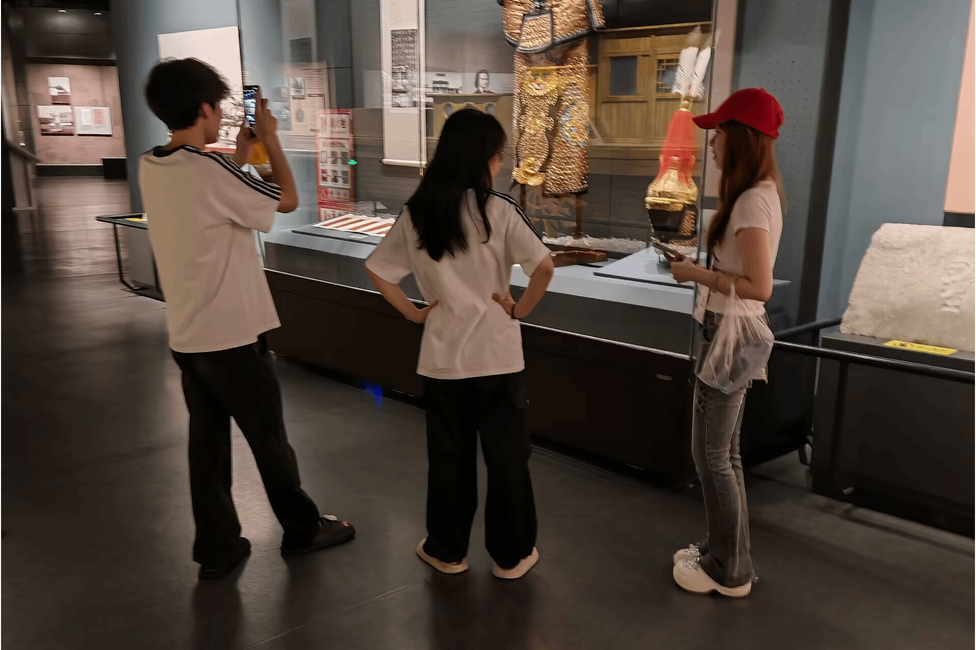 实践团前往安庆市博物馆进行参观,在黄梅戏艺术陈列区,大家驻足于历史文物、戏服道具、影像资料前,认真聆听讲解,探寻黄梅戏的前世今生,感受戏剧表演艺术家传承黄梅戏文化的匠心精神,体会地方戏曲的魅力与文化底蕴。参观结束后,团队在博物馆周边地区对游客与商贩展开调研,围绕“如何在保持传统韵味的基础上,实现戏曲的创新与发展?”“如何破解戏曲人才匮乏难题?”等问题展开深度访谈,探究黄梅戏传承的现实困境,厘清黄梅戏保护、传承、发展之道。