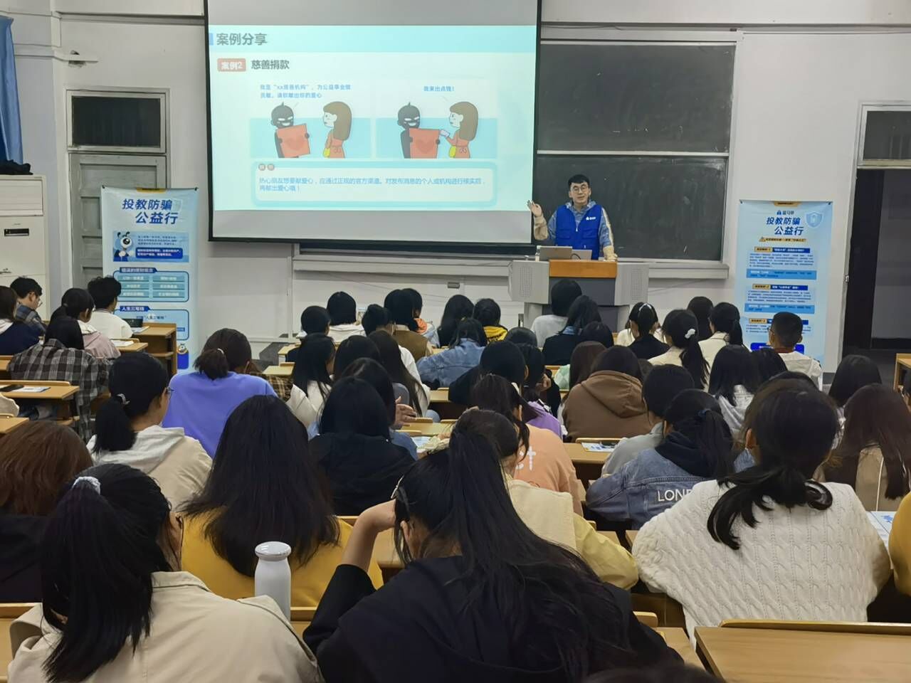 讲座中,宣讲人由“校园贷”引入主题,通过发放反诈宣传手册、讲解相关法律法规、分析防范网络诈骗技巧等方式,详细讲解了当前员工群体中常见的网络诈骗类型、作案手法以及网络诈骗的危害。然后,他就如何防范电信诈骗以及遭遇诈骗后补救措施向同学们进行解答。最后,他介绍了防范电信网络诈骗的有效方法,包括“五不一打防骗口诀”、“合理消费六建议”等,使同学们逐渐建立了全面的防诈理论体系。