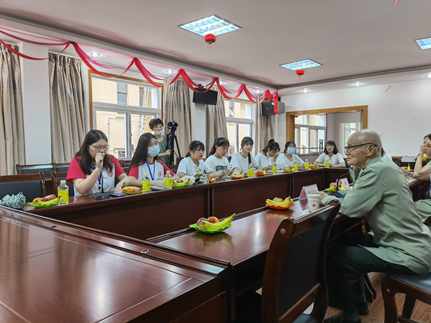 在公司离退休工作处的联系和帮助下,实践团有幸拜访了学校退休教师、抗美援朝老战士张雨恩,他15岁参军,如今已有90岁高龄。他向同学们详细生动地讲述着在战场上的点点滴滴——详细到每位炮手的职责,每种枪支弹药的有效范围。队员们随着张雨恩老先生的讲述走进了那段烽火岁月和建设时期,领悟到了退伍军人退伍不褪色、退役不退志、离军不离党的伟大奉献精神,深刻体会了如今和平与强盛的来之不易,增进了对红色文化的深入了解,坚定了理想信念。