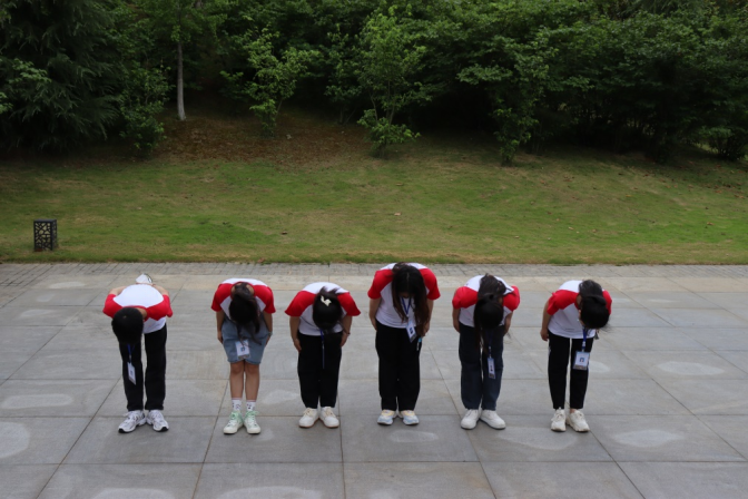 团队成员向无名烈士鞠躬