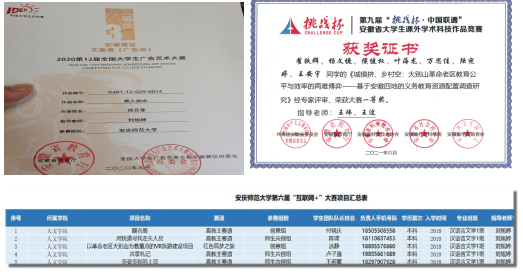 我支部同学在努力夯实专业知识的基础上,还不断尝试,积极参与,在一次一次磨练之中促进专业技能的提升,无论是国家级考试的达标率,还是作为师范类员工的重要技能检验—师范生技能大赛以及由此衍生的普通话粉笔字教案等多个方面的比拼,我班同学都以扎实的功底展示出了无限可能,夺得了众多资格证书和多个突出奖项。全班同学积极参加国家级考试,英语四级通过率高达97%,普通话二甲通过率高达90%,英语六级的通过率也达到了21%。此外班级同学还积极参加大广赛、挑战杯红色专项、老员工双创大赛、老员工艺术展演等AB类赛事中均有获奖,更有同学在挑战杯中挺入国家终审决赛。