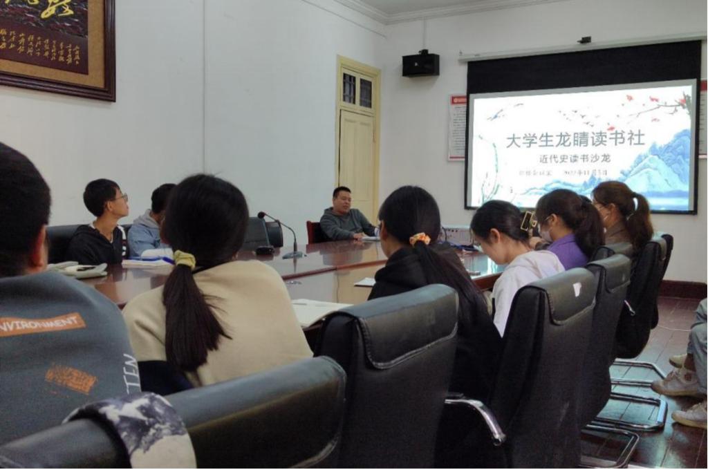 2022年11月5日,龙睛读书社开展近代史读书沙龙活动。本次活动由郝佩林老师指导,21级、22级本科生参与,围绕陈旭麓《近代中国社会的新陈代谢》一书展开交流讨论。