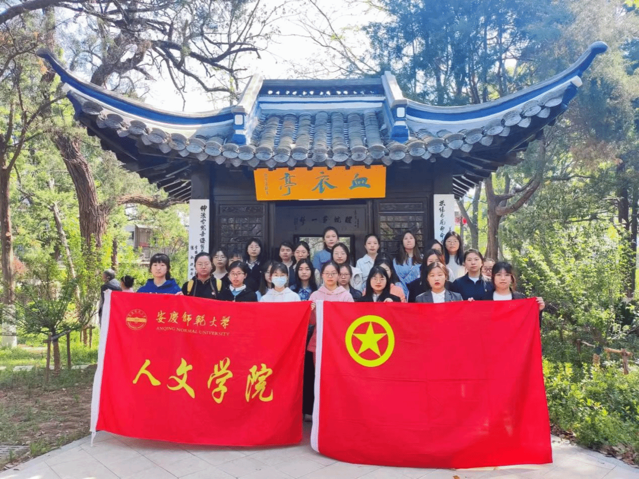 血衣亭位于安庆市菱湖公园东侧,掩映于绿树丛中,肃穆清幽,这是为纪念在1921年惊动全国的安徽省“六·二”学潮运动中,与军阀斗争而牺牲的烈士姜高琦、周肇基而建的。通过此次参观,学员们深刻缅怀了革命先辈的光辉历史,近距离感受了他们的革命情怀。看着血衣亭上悬挂的“醒皖第一声”的牌匾,听着活动负责人许佳诺同学的解说,学员们进一步理解了民主的精神、爱国主义的内涵以及要为社会做贡献的责任意识,领略到了姜高琦烈士高呼“是有天地,何能其生”时英勇无畏的伟大情怀。