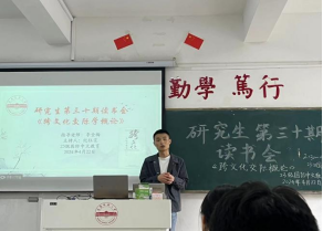 此次读书会主要分为主持人读书书目介绍、书籍作者介绍、员工汇报发言以及指导老师点评四个环节。会议开始,主讲人吴明荣介绍了《跨文化交际概论》的大概内容和重要知识,主讲人徐伟禧针对非语言交际章节内容进行深入阐述;随后,同学们就书内具体细节展开了热烈讨论。