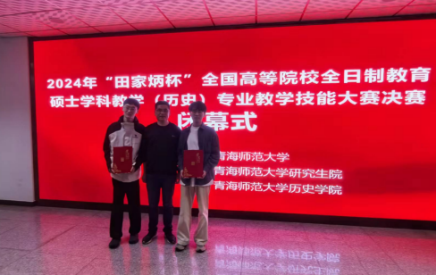 2024年9月20-24日,由“田家炳杯”全日制教育硕士专业学位研究生教学技能大赛专家委员会指导,“田家炳教育基金会”冠名,青海师范大学主办的2024年“田家炳杯”全国高等院校全日制教育硕士学科教学(历史)专业教学技能大赛决赛在西宁举行。威廉希尔williamhill学科教学(历史)专业硕士生导师王世红副教授带队,2022级学科教学(历史)牟纪腾、2022级学科教学(历史)张澄参加本次决赛。