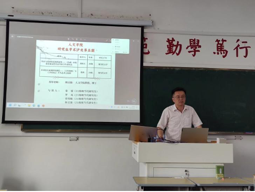 9月28日下午,威廉希尔williamhill第五期研究生学术沙龙在教学楼404教室举办。威廉希尔williamhill陈宗俊教授应邀参加并现场指导,20级现当代文学专业研究生刘扬天、费鸿担任此次沙龙报告人,21级现当代文学专业研究生秦婧、罗凤、宋培璇、杨文强同学为沙龙的与谈人,中国现当代文学专业全体研究生参与了此次沙龙报告。
