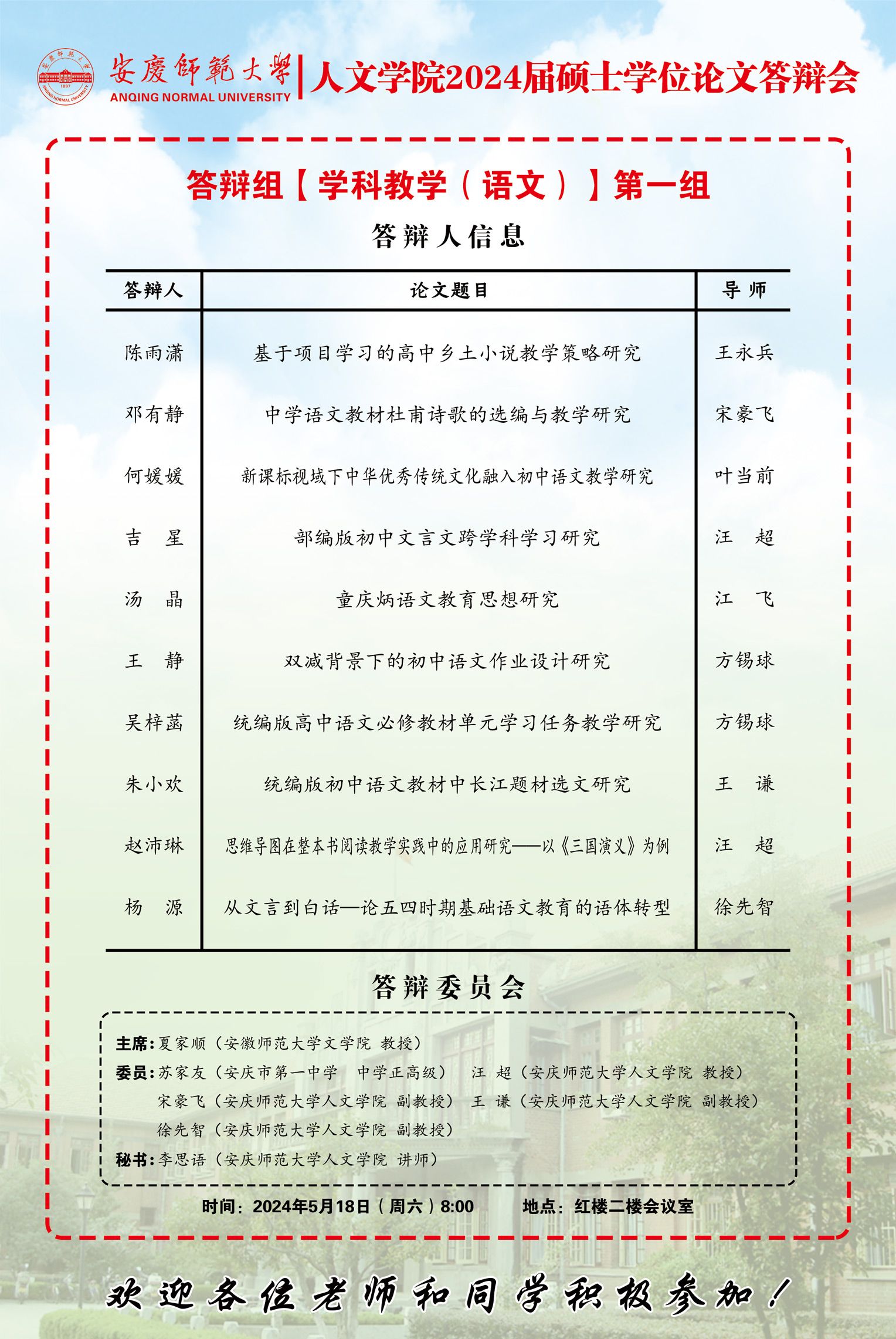 上一篇:2024年上半年硕士研究生学位论文答辩工作安排【中国语言文学、中国史组】