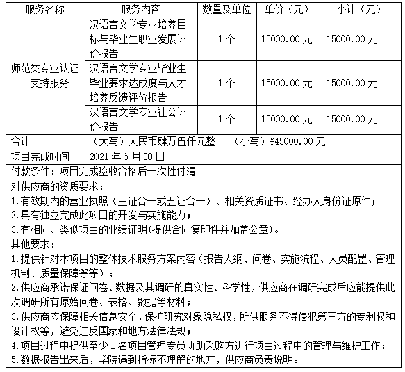 主要成交标的的名称、规格型号、数量、单价、服务要求: