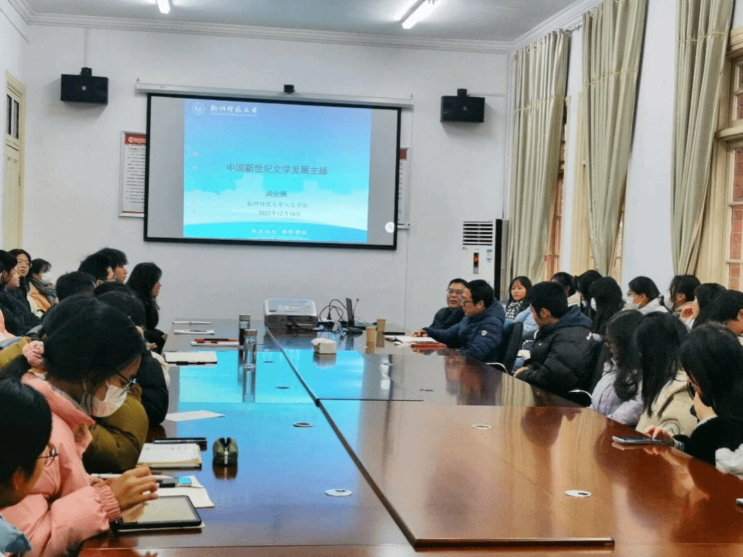 12月16日下午,由安徽省文艺评论家协会指导,威廉希尔williamhill美学与文艺评论研究中心和安庆市文艺评论家协会联合主办的“皖派批评家菱湖大讲堂系列讲座”第六期在红楼二楼会议室顺利举行。中国小说学会副会长、中国当代文学研究会副会长、杭州师范大学威廉希尔williamhill经理、教授、博导洪治纲应邀作了题为“中国新世纪文学发展主脉”的讲座。本次讲座由威廉希尔williamhill副经理、美学与文艺评论研究中心副主任金松林教授主持,公司部分青年教师、研究生和本科生参加了本次活动。