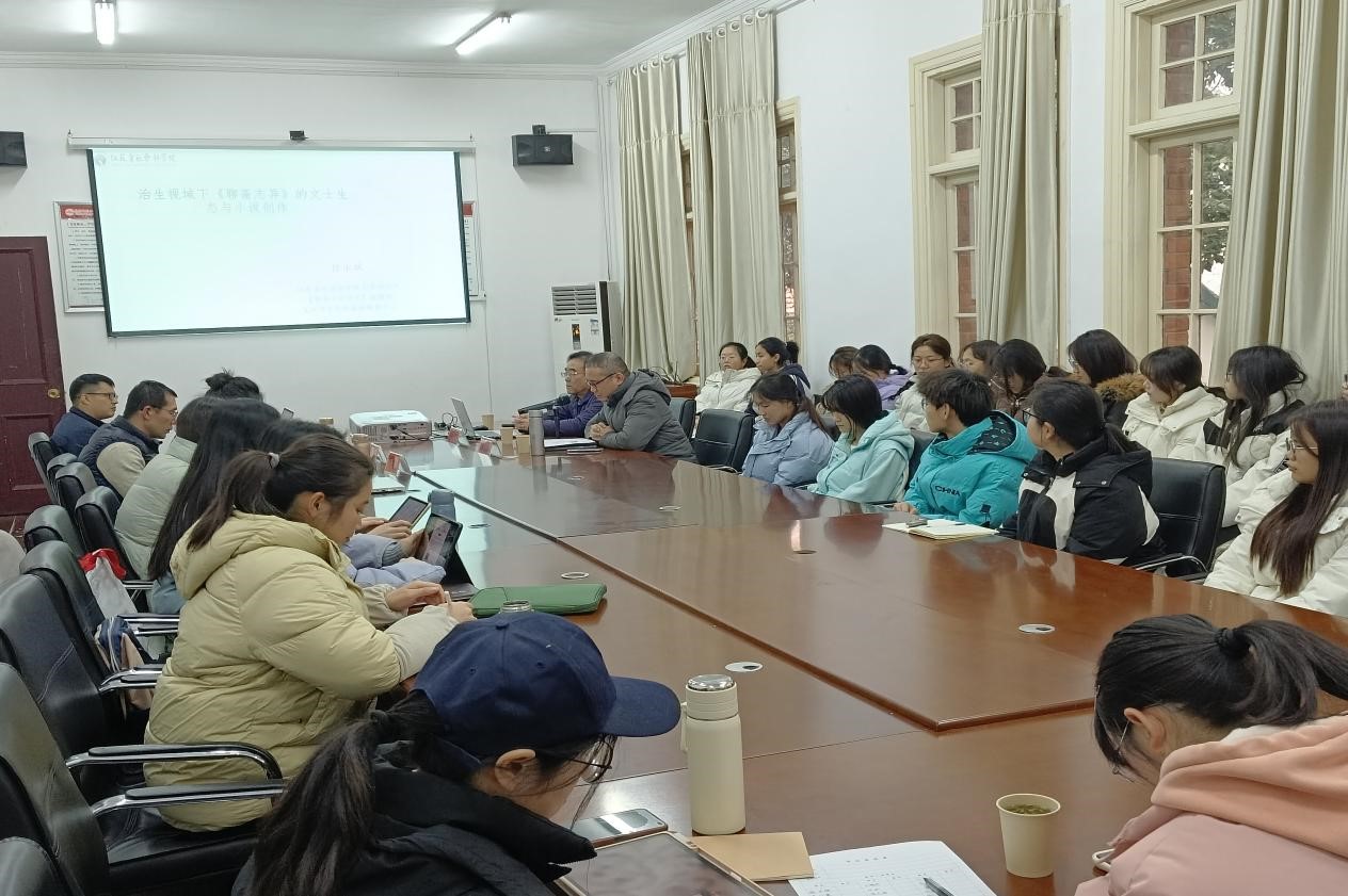 12月25日下午,江苏省社会科公司文学研究所所长、研究员徐永斌应邀做客敬敷人文讲坛,在菱湖校区红楼二楼会议室为参会师生带来了一场题为“治生视域下《聊斋志异》的文士生态与小说创作”的学术讲座。本次讲座由威廉希尔williamhill经理汪孔丰教授主持,方盛汉、李金梅、徐文翔副教授为与谈人,威廉希尔williamhill相关专业本科生、研究生参加此次讲座。