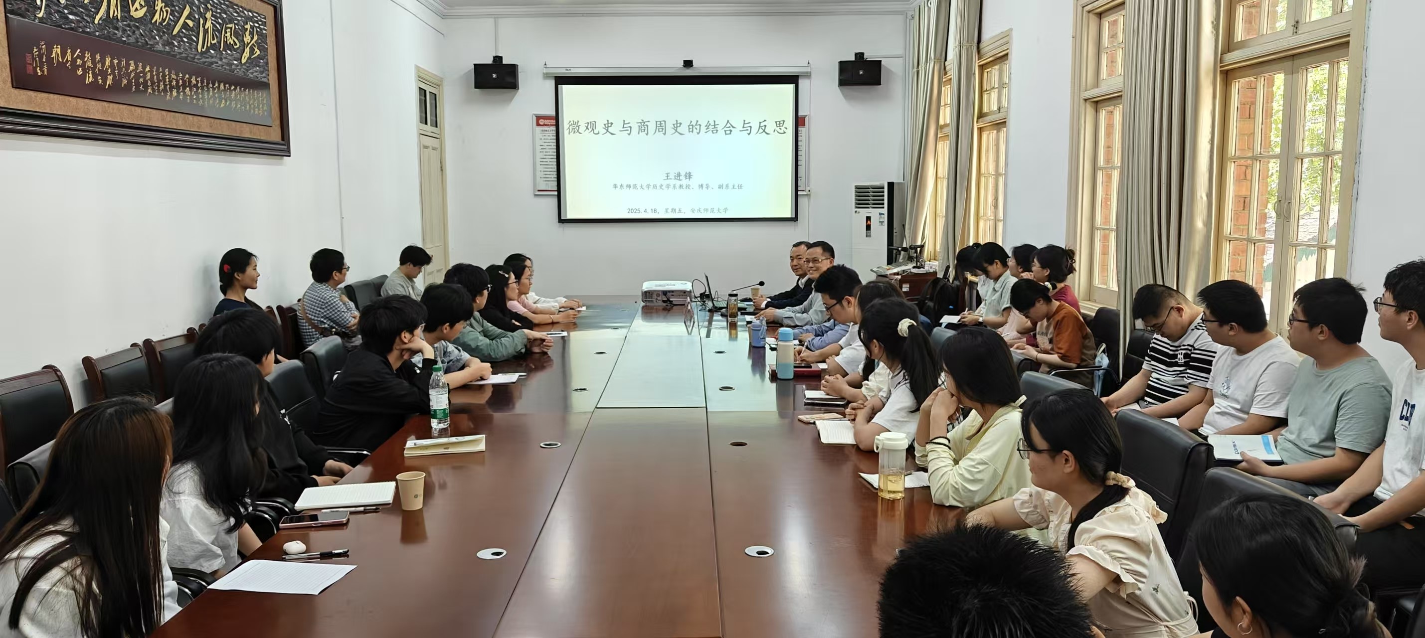 4月18日,华东师范大学历史学系副系主任、博士生导师王进锋教授应邀做客敬敷人文讲坛,在菱湖校区二楼会议室作题为“微观史和商周史的结合与反思”的学术讲座。本次讲座由威廉希尔williamhill副经理沈志富教授主持,威廉希尔williamhill部分青年教师和研究生、本科生参与活动。