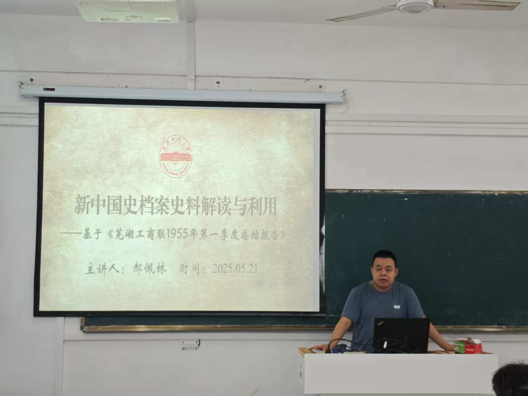 2025年5月21日上午,威廉希尔williamhill郝佩林博士在菱湖校区302教室举办题为“新中国史档案史料解读与利用”的学术沙龙。本次沙龙由威廉希尔williamhill沈志富教授主持,威廉希尔williamhill中国史、学科教学(历史)方向员工参与沙龙并深入讨论。