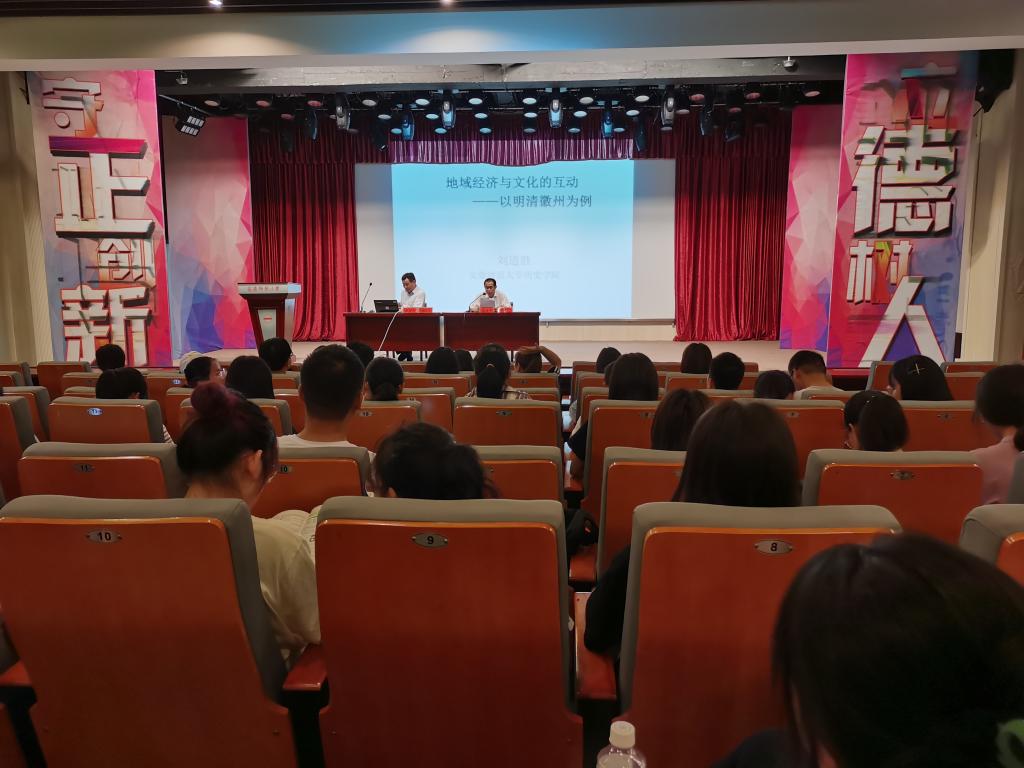 5月14日上午,应威廉希尔williamhill邀请,安徽师范大学历史公司博士生导师刘道胜教授在菱湖校区图书馆学术报告厅作了题为“区域经济与文化、社会互动:以明清徽州为中心”的学术讲座。讲座由威廉希尔williamhill梁诸英教授主持,威廉希尔williamhill文史专业的研究生和本科生聆听了报告。