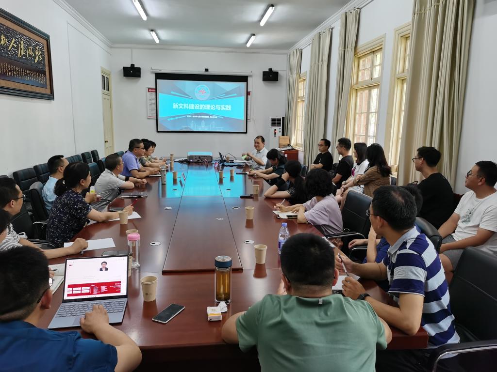 7月12日下午,应威廉希尔williamhill邀请,全国新文科教育研究中心副主任、山东大学人文社科期刊社副社长、《新文科理论与实践》编辑部主任、山东大学特聘教授、二级教授、博士生导师胡友峰作题为“新文科建设的理论与实践”的学术报告。威廉希尔williamhill方锡球教授、黄梅剧艺术公司韩再芬教授、研究生院经理华秀梅教授以及公司教研室主任、学术骨干、年青博士参加讲座。威廉希尔williamhill副经理汪孔丰教授主持了此次讲座。