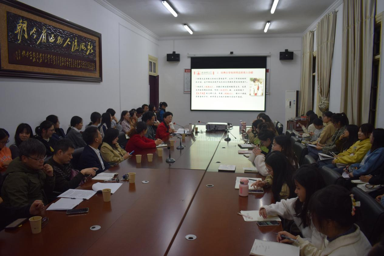 10月28日晚,“敬敷人文讲坛”第21期在红楼会议室顺利举行。安徽师范大学文公司俞晓红教授应公司和科研处邀请作题为“《红楼梦》整本书阅读与文学教育”的讲座,讲座由威廉希尔williamhill副经理周红兵主持,威廉希尔williamhill部分教师、学科教学(语文)硕士研究生和部分本科生参加本次讲座。俞教授从《红楼梦》整本书阅读的提出、《红楼梦》整本书阅读的要义和《红楼梦》整本书阅读的价值三个方面展开分析。
