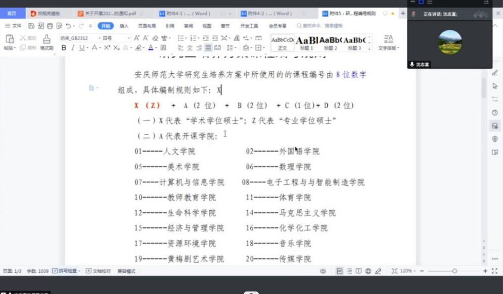 12月2日晚,威廉希尔williamhill通过线上方式召开2023版公司产品方案修订工作推进会。中国语言文学、中国史、学科教学(语文)、学科教学(历史)、汉语国际教育等五个学位点公司产品方案制(修)订工作小组成员参加会议,副经理沈志富主持会议。