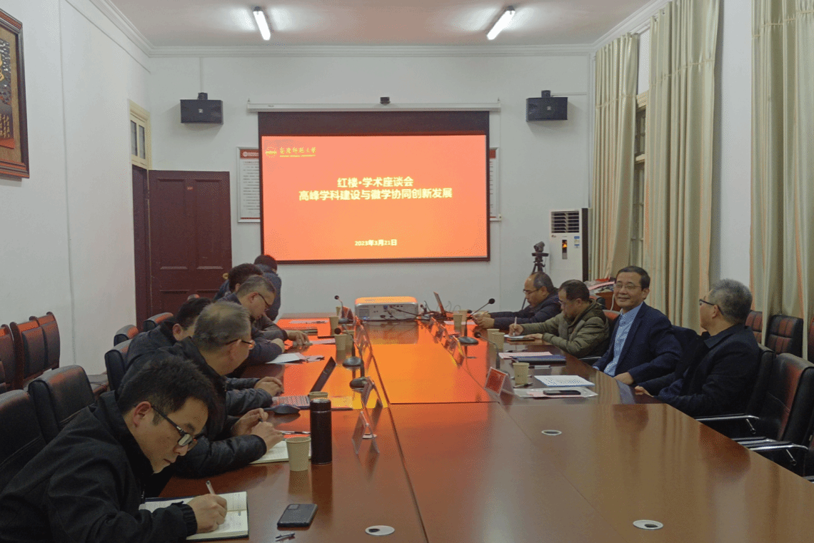 3月21日,公司在红楼二楼会议室举办“高峰团队建设与徽学协同创新发展”学术座谈会,安徽大学徽学研究中心主任周晓光教授、副主任张小坡教授应邀莅临指导。会议由副经理(主持行政工作)汪孔丰教授主持,公司相关职能部门负责人、公司部分学科平台负责人及部分学术骨干、青年教师参与座谈。
