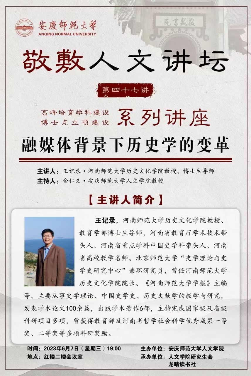 上一篇:【敬敷人文讲坛(48)】精读史书注意事项探析