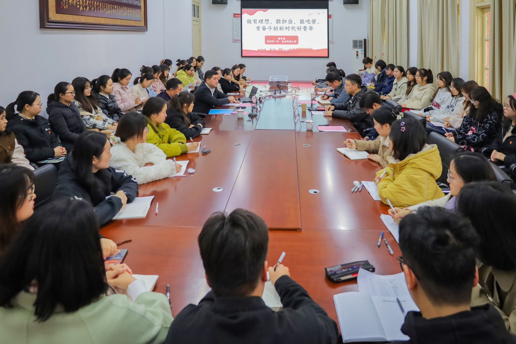 “一个人势单力薄,一群人气壮山河,一起为党和人民的事业奋斗终生!”窦贤琨以《做有理想、敢担当、能吃苦、肯奋斗的新时代好青年》为题作专题讲座。他结合党的二十大精神和习近平总书记对青年工作的重要论述,从党史和团史出发,围绕青年工作团组织的建立和发展,全面准确、深入浅出地阐释了共青团是什么,该干什么,并从“第一属性”“两大命题”“两大论断”“两个面向”“人生三部曲”揭示了青年工作的内涵,并就团学工作的方法与要求与青年员工骨干分享工作经验。