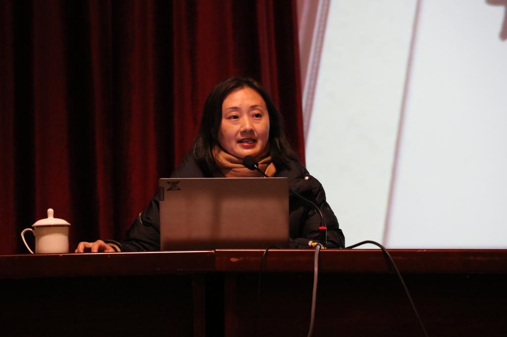 杨春老师还谈到自己对教育和教师的认识。她先以共和国勋章获得者钟南山院士的抗疫事迹为例,发掘他在日常、生活中的众多小事,鼓励员工厚植家国情怀、铸就高尚人格。她还引用了2020年全国教书育人楷模张桂梅老师的事迹。作为一名教师,张桂梅时刻把员工放在心中,克服种种艰苦。她辛勤教书,为来自山区的孩子们创造光明的未来。谈及张桂梅老师,杨春老师动情地表示:“作为一名人民教师,我们应当培养专业信念和情怀,心怀大爱,铸就高尚师德!”