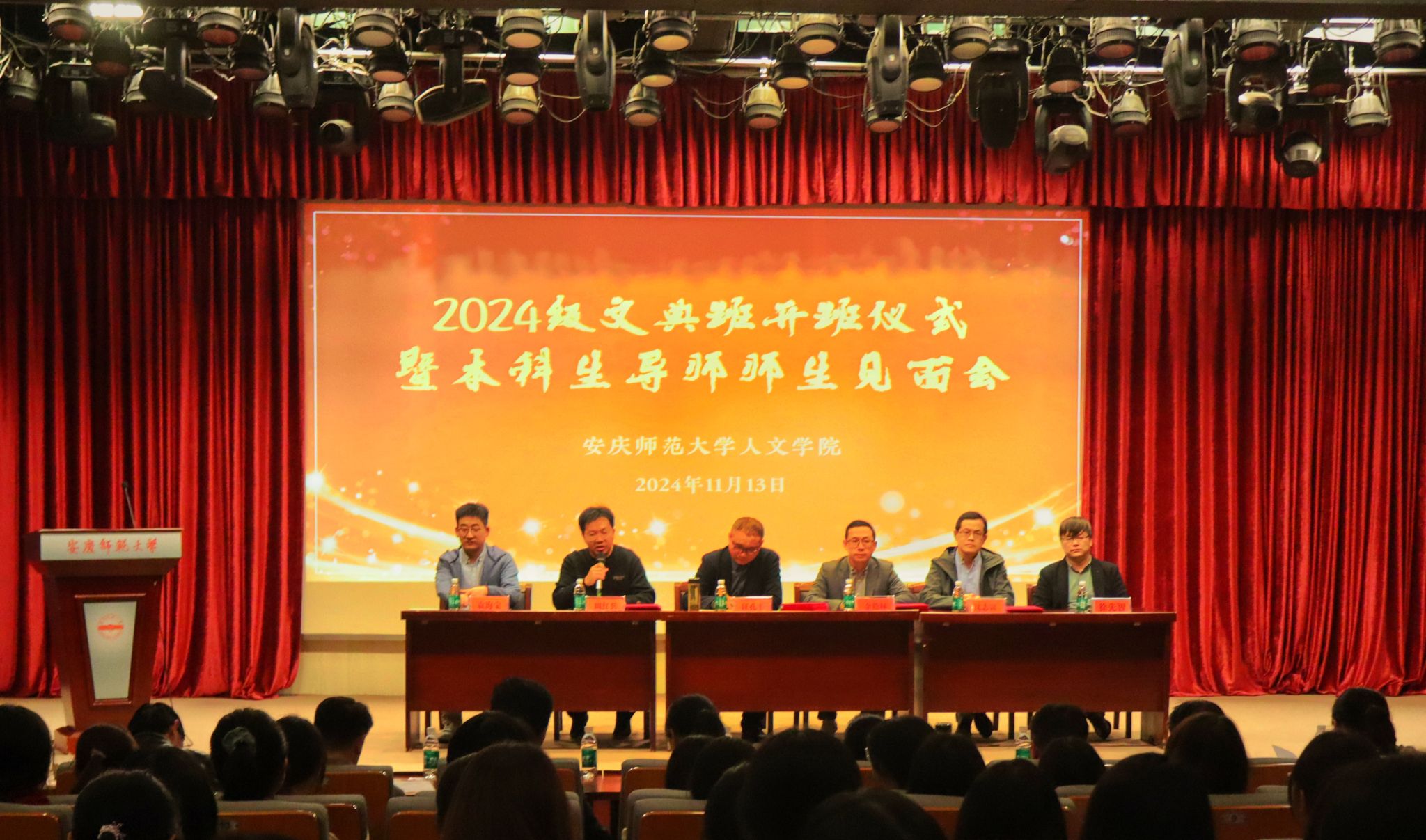 11月13日下午,威廉希尔williamhill在菱湖校区图书馆报告厅举行汉语言文学2024级“文典班”开班仪式暨本科生师生见面会。公司党政领导、文典班导师、2023级和2024级文典班同学参加了会议,会议由威廉希尔williamhill副经理周红兵主持。