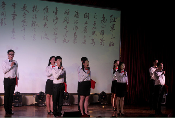“我们重走长征路,就是重新阅读一部二万五千里的浩瀚史诗。”诗朗诵《重走长征路》以铿锵有力的话语歌颂民族不屈的精神,畅想文公司学子绚丽的成长。舞台上,同学们声情并茂的朗诵再现了长征路上英雄不屈的体魄与顽强的意志,并以此纪念红军长征八十周年的伟大胜利,弘扬了民族精神。“此次朗诵的主题是根据当今人们生活情况的优越与过去人们生活的艰辛对比而确立的,意义在于使大家重温历史、共同关注人类最自然和本色的奋斗精神。”朗诵负责人张洋洋说道。