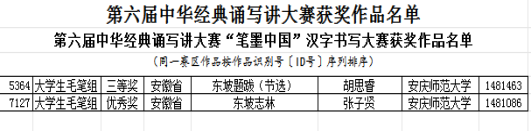 日前,中华经典诵写讲“笔墨中国”第六届汉字书写大赛获奖名单揭晓,我院2022级汉语言文学专业胡思睿、张子贤的作品分别荣获老员工毛笔组三等奖和优秀奖。
