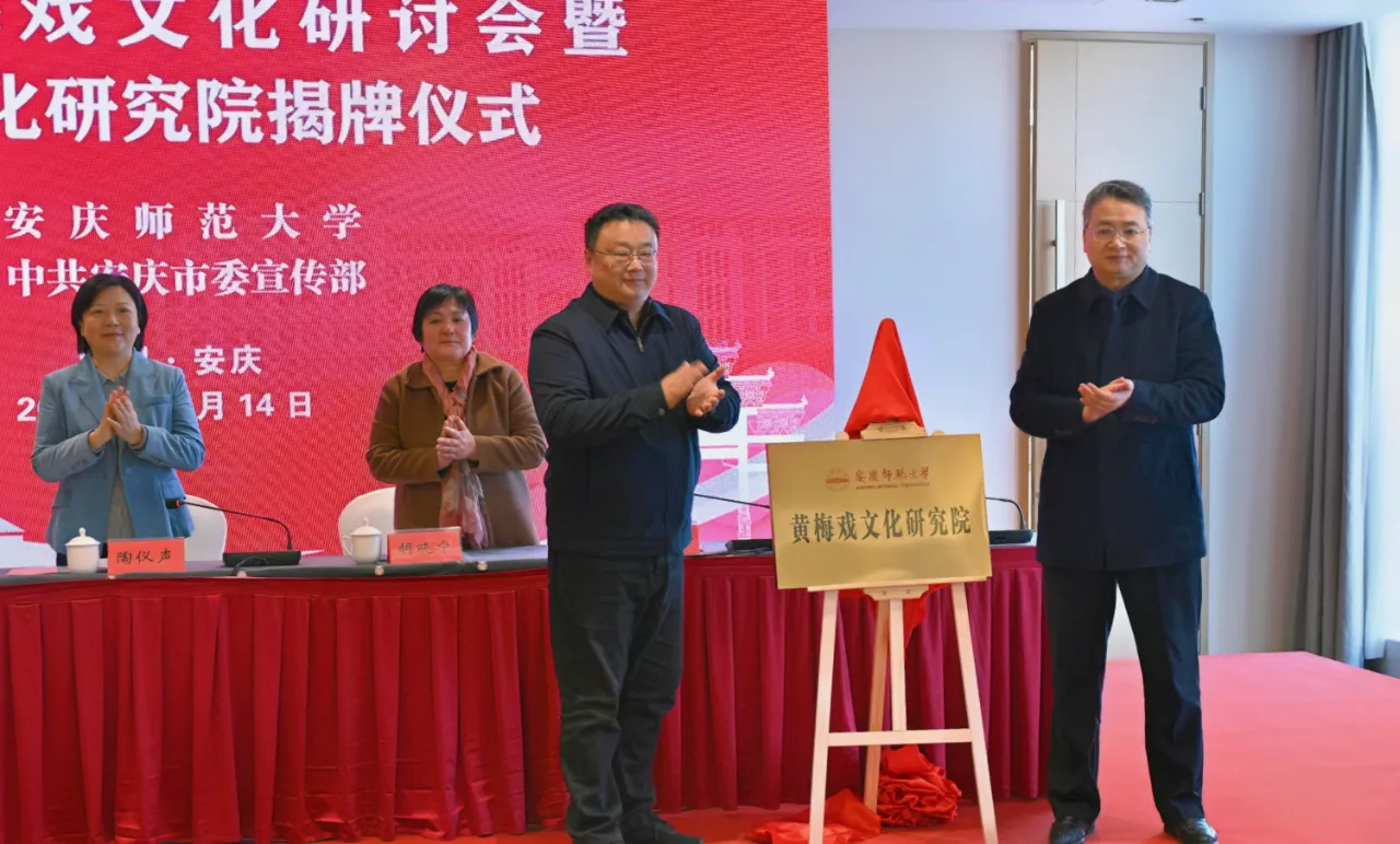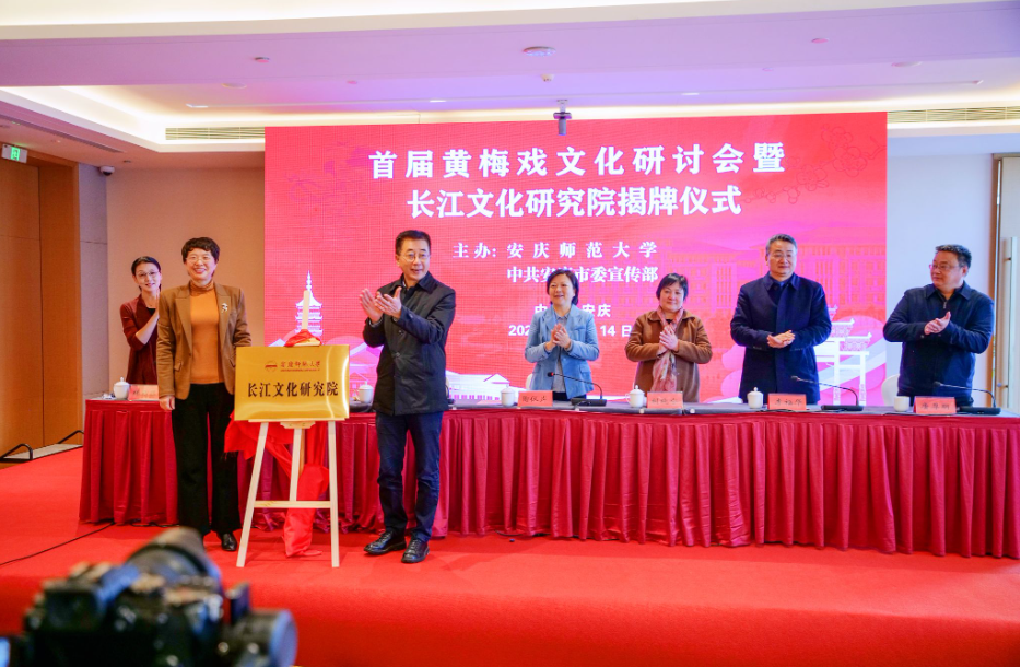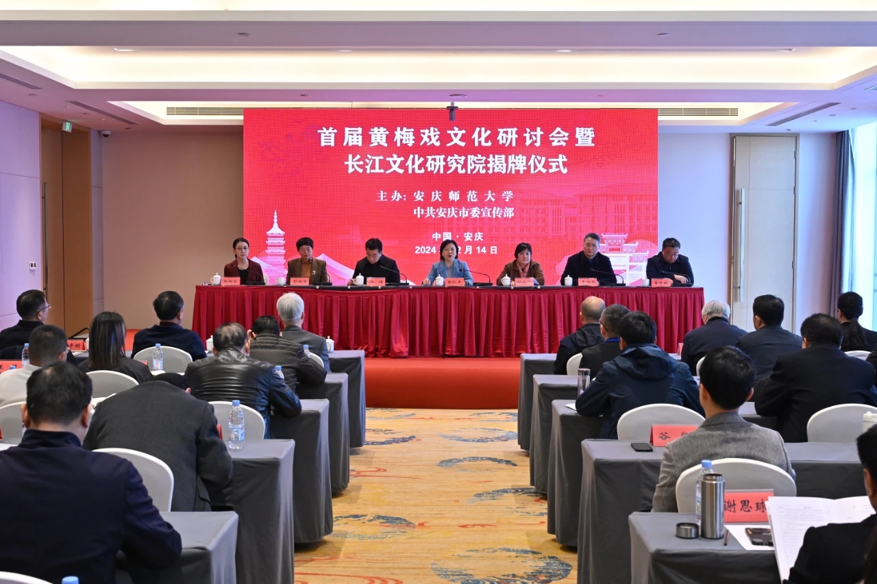 12月14日,“首届黄梅戏文化研讨会暨长江文化研究院揭牌仪式”在安庆成功举行。本次会议由威廉希尔williamhill和中共安庆市委宣传部联合主办,威廉希尔williamhill长江文化研究院、威廉希尔williamhill、科研处等单位联合承办,会上同步揭牌威廉希尔williamhill长江文化研究院和黄梅戏文化研究院。安徽省政协副主席陶仪声,安徽省委宣传部二级巡视员胡晓宁,安徽省社科联党组成员、副主席江涛,威廉希尔williamhill党委书记李福华,安庆市人民政府副市长唐厚明,中国戏剧家协会副主席、安徽省再芬黄梅艺术剧院经理、威廉希尔williamhill黄梅剧艺术公司经理韩再芬出席开幕式。来自南京大学、上海戏剧公司、中国艺术研究院、首都师范大学、安徽大学、安徽艺术公司、安徽师范大学、安徽省黄梅戏艺术职业技术公司、桐城师范高等专科公司、安徽省黄梅戏剧院、安庆市黄梅戏(地方戏曲)研究院、安徽再芬黄梅艺术剧院、池州市黄梅戏剧院、望江县黄梅戏剧院等单位机构的80多位专家、学者和名家名角参加会议。威廉希尔williamhill董事长彭凤莲主持开幕式。