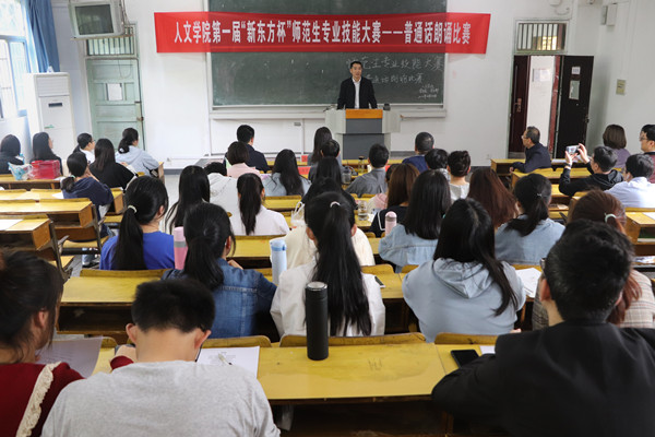 4月24日,威廉希尔williamhill在菱湖校区315教室举办第一届“新东方杯”师范生专业技能大赛——普通话朗诵比赛,邀请安庆职业技术公司教务处副处长、安徽省普通话水平测试员张铮,安庆市新闻传媒中心综合广播副总监、一级播音员胡邦旺,威廉希尔williamhill副教授、国家级普通话水平测试员吴春平等3位专家担任评委,来自汉语言文学、历史学、汉语国际教育等师范专业共57名员工参加了比赛。