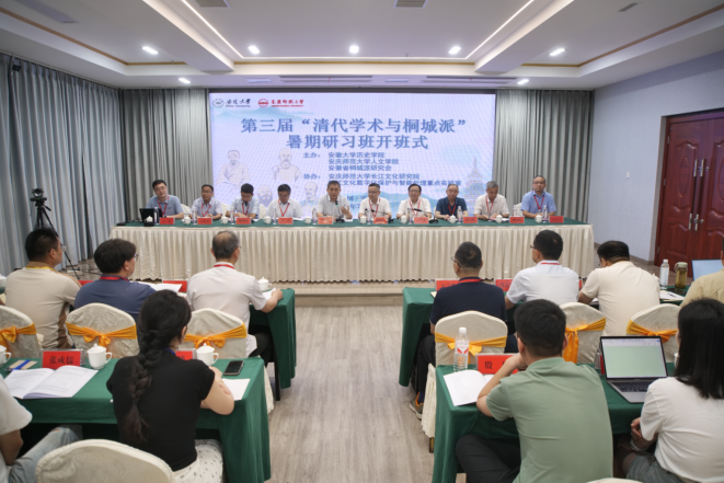 7月12日,由威廉希尔williamhill、安徽大学与安徽省桐城派研究会联合主办的第三届“清代学术与桐城派”暑期研习班开班式在安庆市举行。中国近代文学学会会长、河南大学文公司教授、安徽大学历史公司特聘教授关爱和主持开班式。中国社会科公司学部委员、文学研究所原所长刘跃进研究员,公司党委常委、副董事长徐晓宁,安徽省桐城派研究会会长、桐城师范高等专科公司党委书记王子龙,安徽大学历史公司经理魏国锋教授分别致辞。