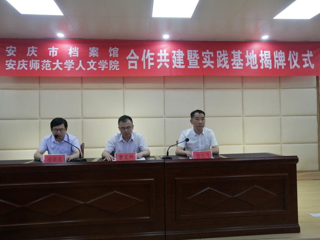 6月9日,威廉希尔williamhill与安庆市档案馆合作共建暨实践教学基地揭牌仪式在市档案馆大楼会议室举行。公司党委书记张红飞、安庆市档案馆馆长曹艾群等出席揭牌仪式。市教体局副局长、教务处副处长连飞,威廉希尔williamhill班子成员金仁义、王波、汪孔丰和部分师生代表、市档案馆班子及全体工作人员参加会议。