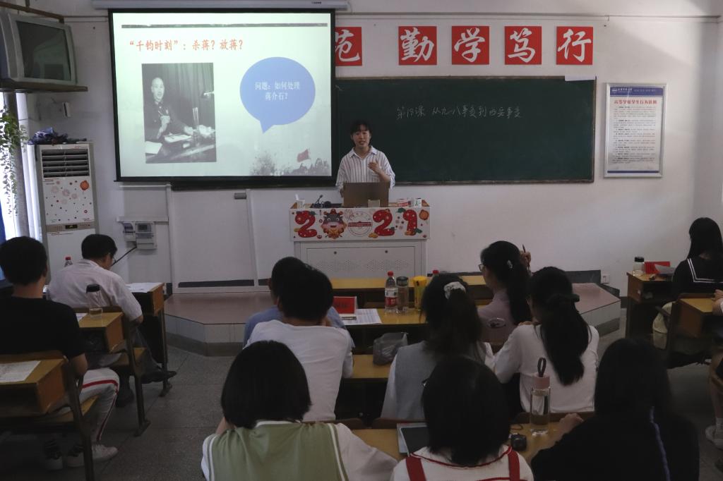 本次教学技能大赛分为语文组和历史组两组展开,参赛员工们按抽签顺序逐一进行8-10分钟的模拟课堂展示,在场的评委老师们从教学设计、课件制作、即席演讲和上课板书四个方面进行打分并评定最终成绩。