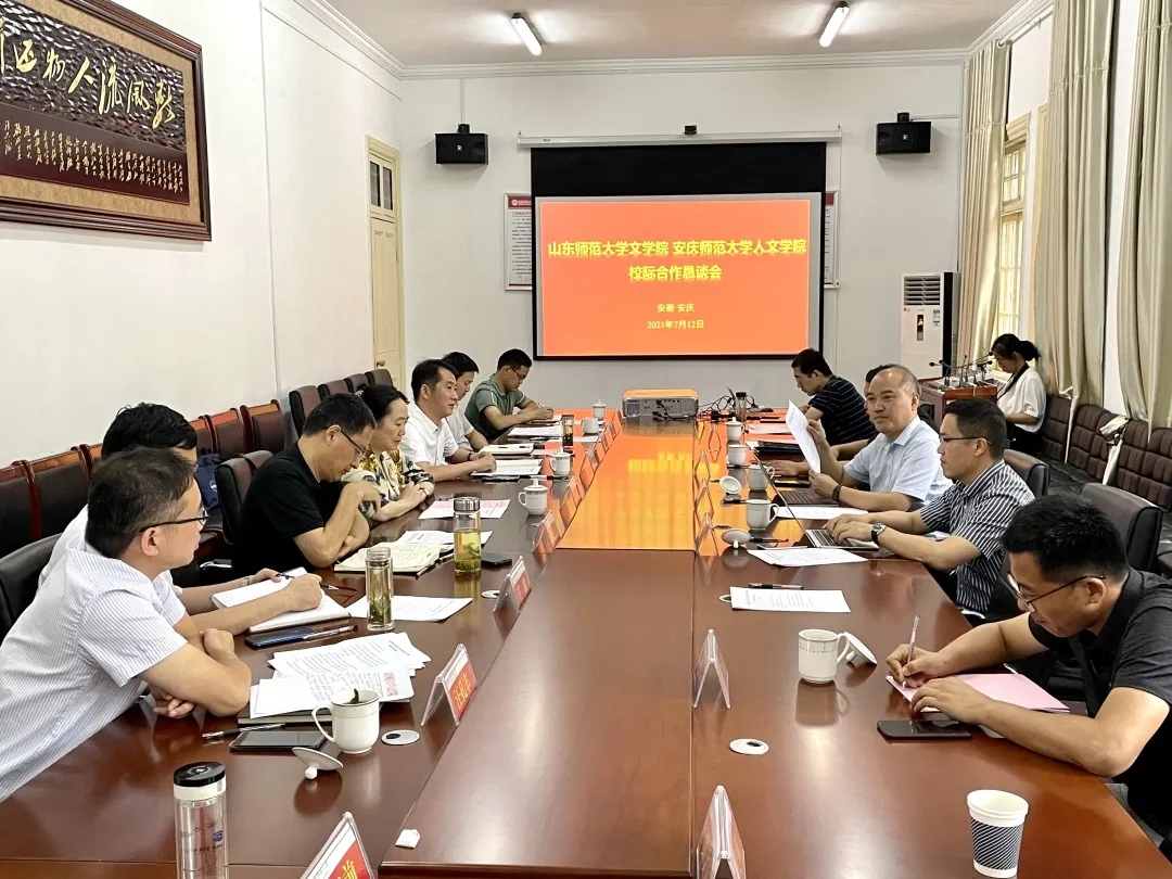 张红飞对孙书文经理一行远道而来表示热烈欢迎,对山东师大文公司给予安庆师大威廉希尔williamhill的支持表示衷心感谢。他指出,威廉希尔williamhill与山东师范大学文公司签订校际合作框架协议是新形势下推进高水平公司建设的迫切需要,是贯彻新发展理念,构建新发展格局,推进高质量发展的迫切需要,也是实施开放办学、建设高水平公司的重要举措。他希望双方按照“优势互补、资源共享、互惠互利、共同发展”的原则,加大交流力度,真正实现合作共赢。