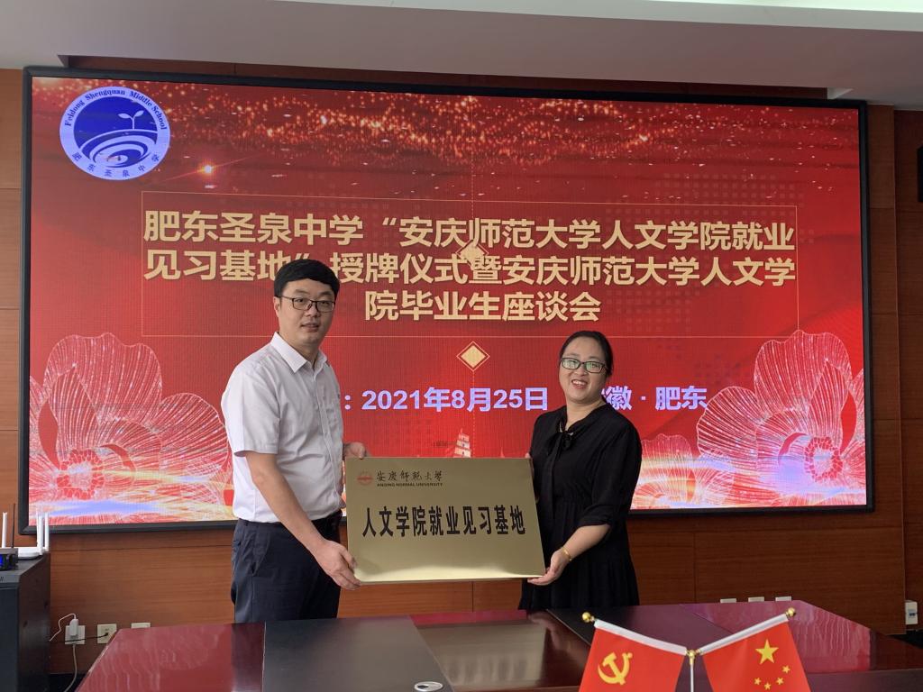 党委副书记王波代表公司为肥东圣泉中学授予“威廉希尔williamhill就业见习基地”牌匾。与会人员就人才培养质量、就业见习基地建设等方面展开了深入交流。