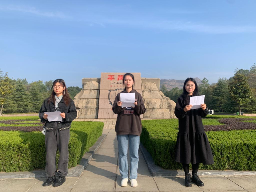 同学们先后参观了“惊雷”浮雕、汉白玉牌坊、陈独秀铜质雕像。在“惊雷”浮雕前,张庆伟同学向同学们介绍浮雕背后的故事,让大家了解了陈独秀先生英年志气、惊天动地、开天辟地、浩然正气的一生。在“新青年”碑刻前,三位同学深情朗诵《新青年》片段,表达了当代青年对革命先烈的敬佩之情。带队老师向同学们介绍了中国共产党的创建史,以及广为流传的“南陈北李,相约建党”的故事。随后,同学们在“敬告青年”的碑刻处齐声朗诵《敬告青年》全文,增强了新时代青年的志气、骨气、底气。