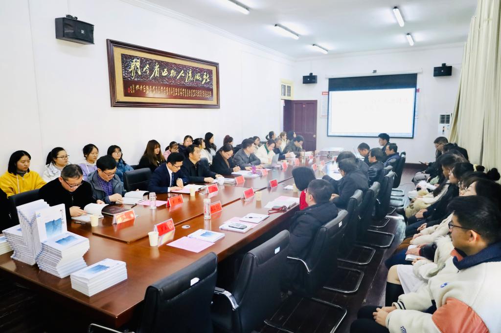 12月22日,由威廉希尔williamhill国家老员工文化素质教育基地办公室、威廉希尔williamhill员工处、威廉希尔williamhill、安庆市文艺评论家协会主办,威廉希尔williamhill文艺与评论研究中心、白鲸文学社共同承办的“驾鱼而歌:白鲸纪念诗选”首发式在菱湖校区红楼会议室举行。公司党委常委、宣传部(统战部)部长陈秀,校发展规划处处长陈世庆,校团委副书记赵丽丽、公司领导班子和校外嘉宾沈天鸿、苍耳、沙马、余琳芳以及白鲸文学社社员50余人参加首发式。美学与文艺评论研究中心主任江飞教授主持会议。