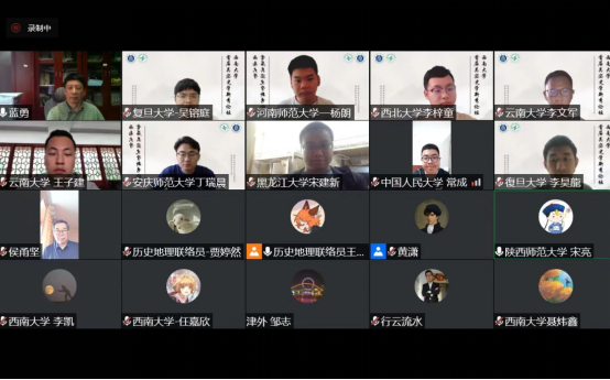 本次论坛主要分为会议讨论和主题演讲两个环节。会议讨论环节设置有中国古代史、中国近现代史、中国历史地理、世界史四个分会场,以同学自主汇报、成员互评、专家点评为主要形式。丁瑞晨同学担任中国历史地理学分会场的主持,并汇报提交论文的相关内容,西南大学蓝勇教授对丁瑞晨同学的发言予以精彩点评。主题演讲环节,卜宪群教授、张侃教授、侯甬坚教授、张勇安教授等史学名家就各自领域最新研究成果为同学们带来了一场学术盛宴。